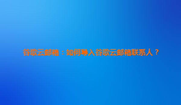 2025-07-26谷歌云邮箱:如何高效导入联系人并利用其云端优势 谷歌云邮箱联系人的重要性 联系人管理是现代高效沟通的核心。无论是商务协作还是日常交流,快速访问联系人信息能显著提升工作效率。谷歌云邮箱(Gmail)作...