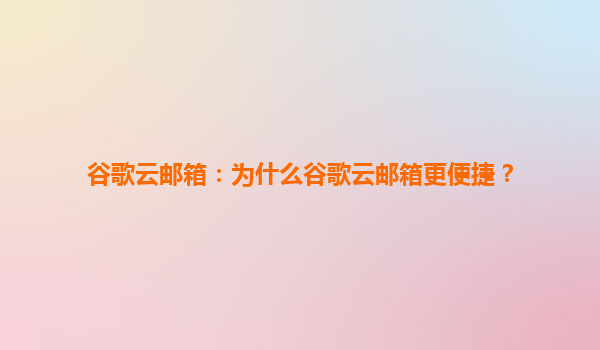 2025-07-26谷歌云邮箱:为何成为现代办公的高效之选? 一、无缝整合的生态系统 谷歌云邮箱(Gmail)作为GoogleWorkspace的核心组件,与Docs、Drive、Meet等工具深度集成,用户可直接在邮箱界面编...