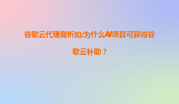 2025-07-25谷歌云代理商折扣:为什么AI项目可获得谷歌云补助? 一、谷歌云的竞争优势与AI生态布局 谷歌云作为全球三大云服务商之一,凭借其强大的技术基础设施和AI原生服务能力,在人工智能领域构...