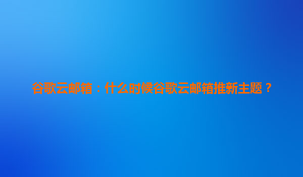 2025-07-25谷歌云邮箱:全面解析其高效功能与未来主题更新展望 谷歌云邮箱的核心优势:打造高效沟通体验 作为全球领先的云端办公解决方案,谷歌云邮箱(Gmail)凭借其稳定的服务架构和创新的功能设计,持续为用户提供无缝...