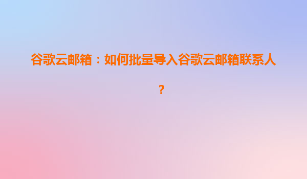 2025-07-23高效管理通讯录:谷歌云邮箱批量导入联系人全攻略 在工作中,一个组织良好的联系人列表可以极大提升沟通效率。谷歌云邮箱(Gmail)提供了强大的联系人管理功能,允许用户批量导入和管理联系人。本文将详细介绍如何...