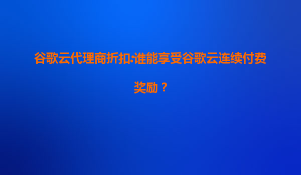 2025-07-21谷歌云代理商折扣政策详解 连续付费奖励的受益者 谷歌云通过代理商为不同规模的企业提供灵活的折扣政策,其中连续付费奖励(ContinuousUsageDiscounts)主要面向长期稳定使用谷歌云服务的客户。...