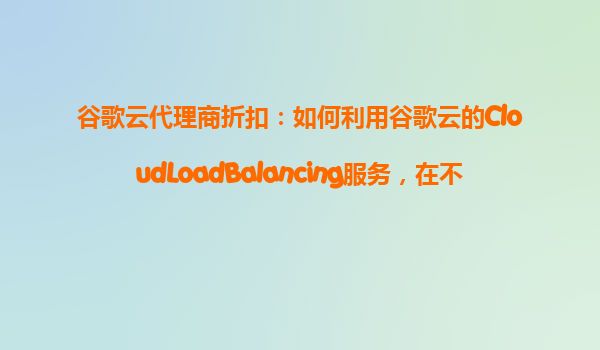 2025-10-30谷歌云代理商折扣:如何利用谷歌云的CloudLoadBalancing服务在不增加成本的前提下提升性能 引言 在当今数字化时代,企业对于云计算的需求与日俱增,尤其是高性能、高可用的网络服务。...