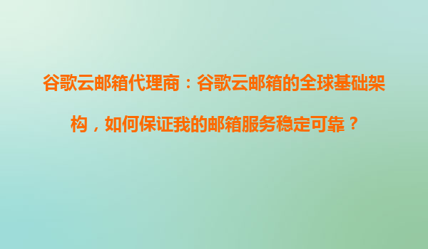 2025-10-30谷歌云邮箱代理商:谷歌云邮箱的全球基础架构如何保障服务稳定可靠 引言 在数字化时代,企业邮箱已成为商业沟通的核心工具。谷歌云邮箱(GoogleWorkspace)凭借其卓越的全球基础架构和稳定...