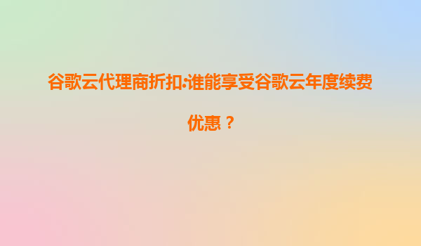 2025-07-19谷歌云代理商折扣:谁能享受谷歌云年度续费优惠? 谷歌云(GoogleCloud)作为全球领先的云计算服务提供商之一,凭借其强大的技术实力和丰富的产品矩阵,已成为众多企业和开发者的首选。许多用户在选择谷歌...