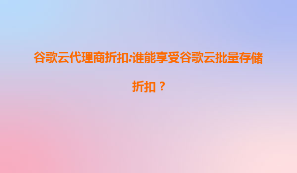 2025-07-19谷歌云代理商折扣:谁能享受谷歌云批量存储折扣? 一、谷歌云代理商折扣概述 谷歌云代理商折扣是谷歌云合作伙伴计划中的重要组成部分,旨在通过授权代理商为客户提供更具竞争力的价格方案。其中,批量存储折...