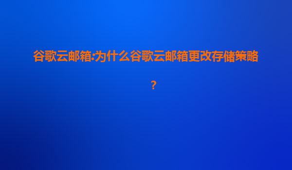 2025-07-19谷歌云邮箱:为什么谷歌云邮箱更改存储策略? 引言 近年来,谷歌云邮箱(GoogleWorkspace,原GSuite)对其存储策略进行了调整,引发了广泛关注。这一变化不仅影响了企业用户,也让个人用户对云存储的未来...