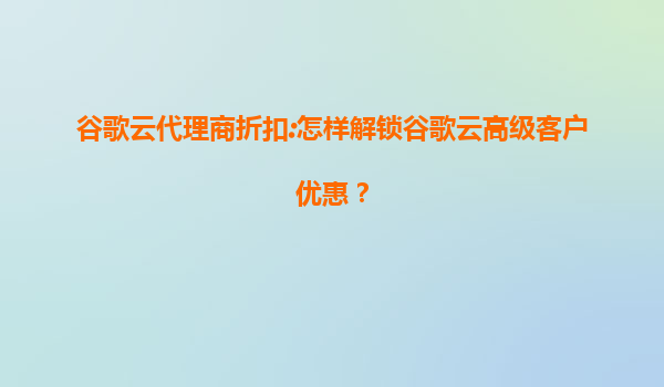 2025-07-19谷歌云代理商折扣:怎样解锁谷歌云高级客户优惠? 一、谷歌云的核心优势 谷歌云(GoogleCloudPlatform,GCP)作为全球领先的云计算服务提供商,凭借以下优势成为企业数字化转型的首选: 全球基础设施...