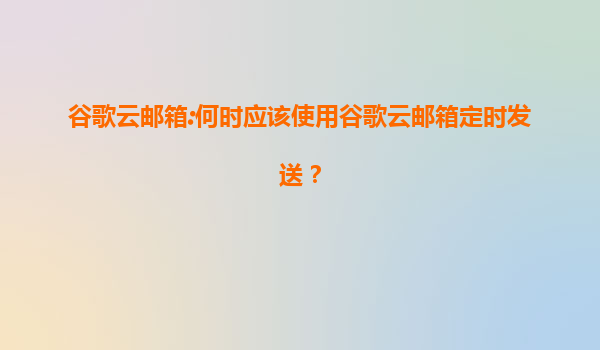 2025-07-19谷歌云邮箱:何时应该使用谷歌云邮箱定时发送? 引言 在当今快节奏的工作环境中,电子邮件仍然是商务沟通的主要方式之一。然而,仅仅发送邮件是不够的,更重要...
