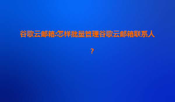 谷歌云邮箱:怎样批量管理谷歌云邮箱联系人? 在日常工作和生活中,电子邮件已成为我们沟通的重要工具。而谷歌云邮箱(Gmail)作为全球最受欢迎的电子邮件服务之一,不仅提供强大的邮件管理功能,还在联系人管理方...