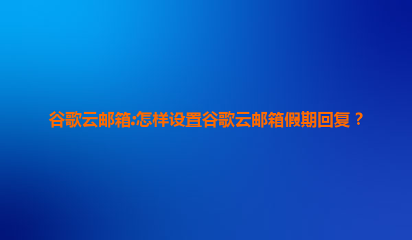谷歌云邮箱:怎样设置谷歌云邮箱假期回复? 在现代数字化办公环境中,专业的电子邮件管理是企业形象的重要组成部分。当您或您的团队因休假、出差或其他原因暂时无法及时回复邮件时,设置自动回复(假期回复)功能...
