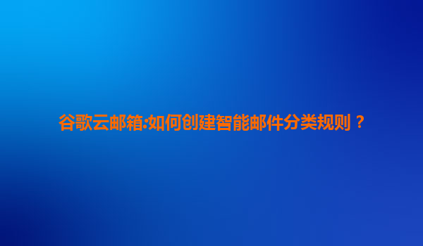 2025-07-19谷歌云邮箱:如何创建智能邮件分类规则? 引言 在日常工作和生活中,电子邮件已成为我们不可或缺的沟通工具之一。然而,随着邮件数量的增多,如何高效管理和分类邮件成为一个重要课题。谷歌云...