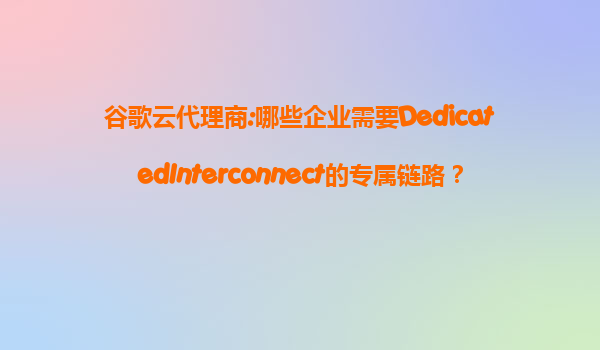 2025-07-19谷歌云代理商:哪些企业需要DedicatedInterconnect的专属链路? 在当今高度互联的数字时代,企业依赖于云计算来提升业务运营效率、降低成本并增强安全性。然而,并不是所有的企业都能通过公共互联网满足其对数据...