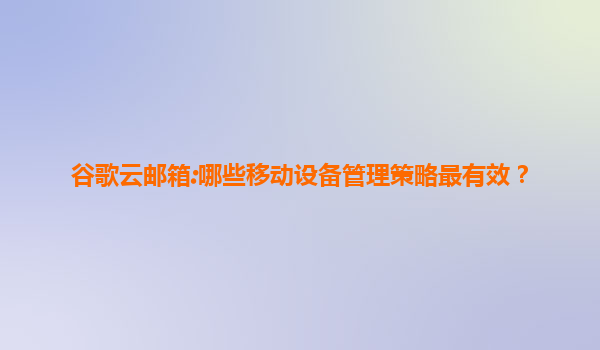 2025-07-19谷歌云邮箱:最有效的移动设备管理策略 引言 在当今数字化时代,企业越来越依赖移动设备管理(MDM)来保障数据安全并提升工作效率。谷歌云邮箱(GoogleWorkspa...