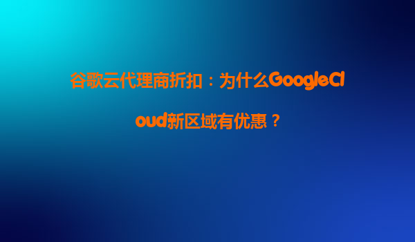 2025-07-19谷歌云代理商折扣:为什么GoogleCloud新区域有优惠? 一、GoogleCloud新区域优惠的背景与策略 谷歌云(GoogleCloud)作为全球领先的云服务提供商,持续通过技术创新和区域扩...
