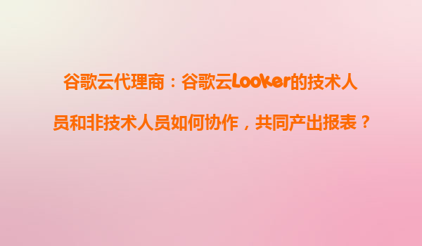 2025-10-29谷歌云代理商:谷歌云Looker的技术人员和非技术人员如何协作,共同产出报表? 引言:协作的价值 在数据驱动的时代,如何高效地从海量数据中提取有价值的信息并转化为行动,是企业面临的核心挑...