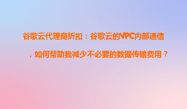 2025-10-29谷歌云代理商折扣:如何通过VPC内部通信减少不必要的数据传输费用 引言:云成本优化的重要性 在云计算时代,企业越来越依赖云服务来支撑业务运作,但随之而来的...