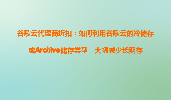 2025-10-29谷歌云代理商折扣:如何利用冷储存或Archive储存大幅降低长期存储成本 谷歌云存储服务的核心优势 谷歌云平台提供多样化存储解决方案,其中Coldline(冷储存)和Archive(归档储存)是专为不常访问数据设计...