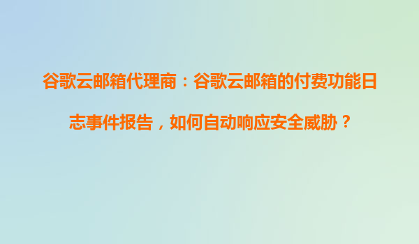2025-10-29谷歌云邮箱代理商:谷歌云邮箱的付费功能日志事件报告如何自动响应安全威胁? 引言:为什么选择谷歌云邮箱? 谷歌云邮箱(GoogleWorkspace)是企业级电子邮件和协作工具的标杆,不仅提供强大的基...