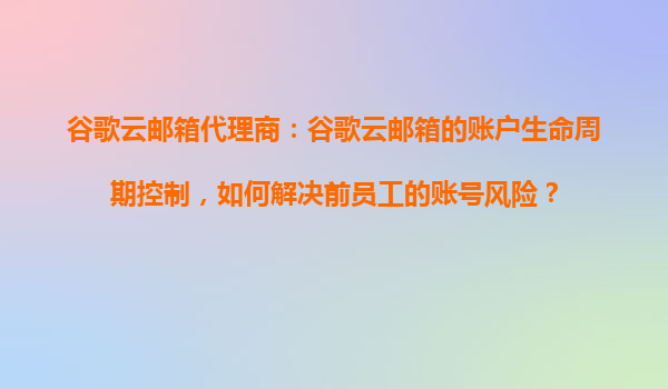 2025-10-28谷歌云邮箱代理商:谷歌云邮箱的账户生命周期控制,如何解决前员工的账号风险? 一、前员工账号风险的核心挑战 在企业运营中,员工流动是常态,但离职员工的邮箱账号若未及时管理,可能带来数...