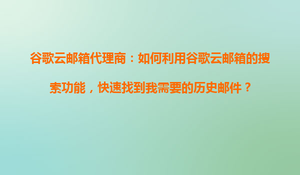 谷歌云邮箱代理商:如何利用谷歌云邮箱的搜索功能,快速找到历史邮件? 一、谷歌云邮箱的搜索能力概述 谷歌云邮箱(GoogleWorkspace)的核心优势之一是其强大的搜索功能,基于谷歌全域搜索技...