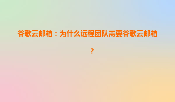 2025-07-19谷歌云邮箱:为什么远程团队需要谷歌云邮箱? 引言 随着远程办公的普及,团队协作工具的需求日益增长。谷歌云邮箱(GmailforBusiness)作为谷歌云(GoogleCloud)的核心服务之一,凭借其强大的功能和稳...