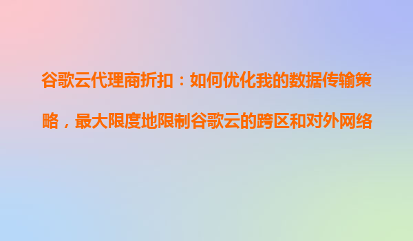 2025-10-28谷歌云代理商折扣:如何优化数据传输策略以降低跨区和对外网络费用? 一、理解谷歌云的网络费用结构 谷歌云的计费模型中,数据传输费用是核心成本之一,尤其是...