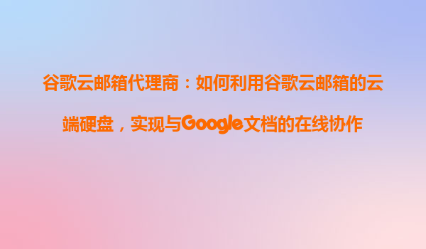 2025-10-28谷歌云邮箱代理商:如何利用谷歌云邮箱的云端硬盘,实现与Google文档的在线协作? 一、谷歌云邮箱的核心优势 谷歌云邮箱(GoogleWorkspace,原GSuite)作为企...