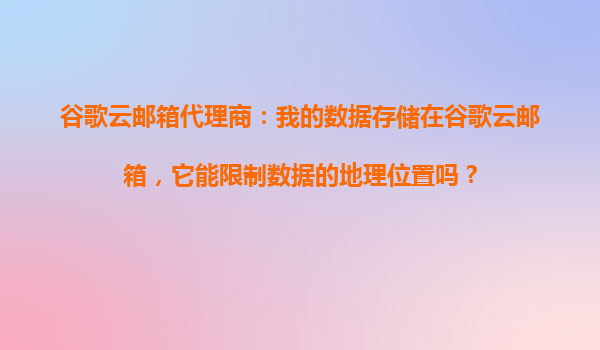 2025-10-28谷歌云邮箱代理商:我的数据存储在谷歌云邮箱,它能限制数据的地理位置吗? 引言 随着数据隐私法规日益严格(如GDPR、CCPA),企业对数据存储地理位置的要求越来越高。谷歌云邮箱(GoogleWor...