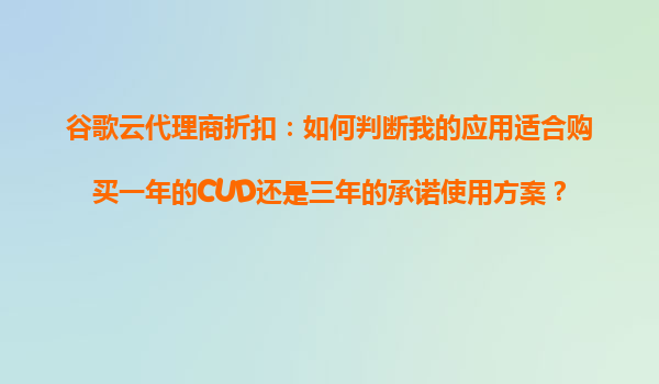 2025-10-27谷歌云代理商折扣:如何判断我的应用适合购买一年的CUD还是三年的承诺使用方案? 引言 在数字化转型的浪潮中,云计算已成为企业IT基础设施的核心。谷歌云平台(GoogleCloudPlatform,GCP)凭借...