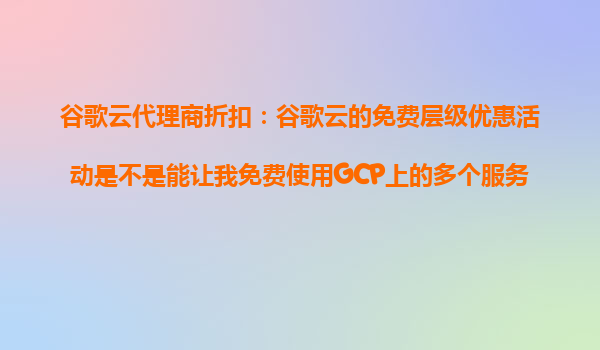 谷歌云代理商折扣:免费层级优惠活动解析 谷歌云(GoogleCloudPlatform,GCP)通过代理商提供的折扣及免费层级优惠活动,为用户提供了低成本甚至免费体验其强大服务的机会。免费层级覆盖计算、存...