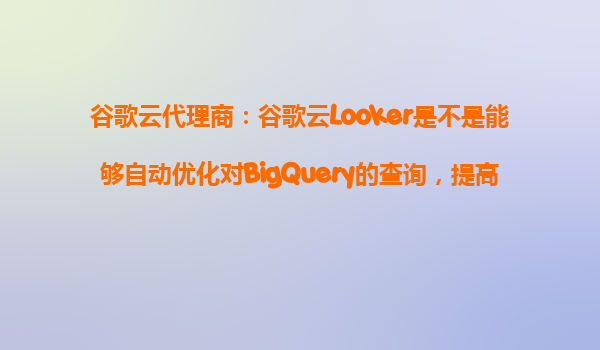 2025-10-26谷歌云Looker能否自动优化BigQuery查询?全面解析其性能优势 一、Looker与BigQuery的深度集成 Looker作为谷歌云旗下的商业智能(BI)平台,与BigQuery的深度集成是其核心优势之一。通过...
