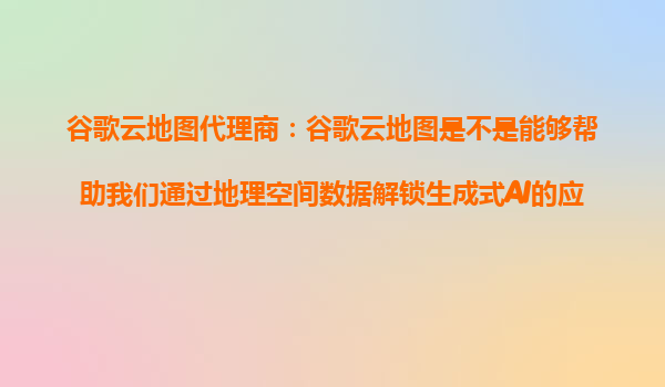 2025-10-26谷歌云地图代理商:解锁生成式AI的地理空间数据应用场景 在数字化转型的浪潮中,地理空间数据与生成式人工智能(AI)的结合正开辟全新的商业和技术可能性。作为谷歌云地图的代理商,我们深刻理解谷歌云平台在这...