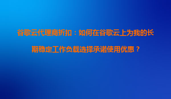 2025-10-26谷歌云代理商折扣:如何在谷歌云上为长期稳定工作负载选择承诺使用优惠? 一、谷歌云的核心优势 谷歌云(GoogleCloud)作为全球领先的云计算服务提供商,凭借其强大的基础设施和创新的...