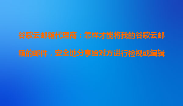 2025-10-25谷歌云邮箱代理商:如何安全地分享邮件给对方检视或编辑? 一、概述:谷歌云邮箱的优势 谷歌云邮箱(GoogleWorkspaceGmail)提供了强大的企业级邮件管理功能,其安全性、协作性和灵活性使其成为...