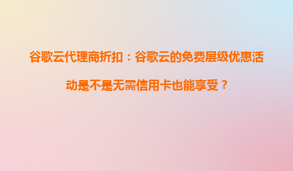 2025-10-25谷歌云代理商折扣:深入解析谷歌云免费层级优惠活动 一、谷歌云免费层级的核心优势 谷歌云免费层级(FreeTier)是谷歌云平台为开发者和小型企业提供的入门级福利,其核心优势体现在以下三个...