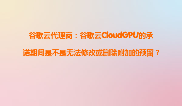 2025-10-25谷歌云代理商解读:谷歌CloudGPU预留资源管理策略与平台优势 一、CloudGPU预留资源的不可变性解析 根据谷歌云官方政策,在CloudGPU的承诺使用期间,附加的预留确实无法修改或删除。这是...