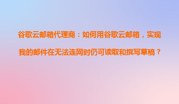 2025-10-25谷歌云邮箱的离线功能及其优势 在现代快节奏的工作环境中,稳定的网络连接并不总是有保障。无论是出差、旅行,还是网络不稳定的地区,我们都可能面临无法连网的情况。然而,谷歌云邮箱(Gmail)通过其强大的离线...