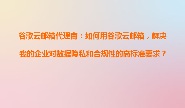 2025-10-25谷歌云邮箱代理商:如何用谷歌云邮箱解决企业对数据隐私和合规性的高标准要求 引言 在数字化时代,企业对电子邮件系统的数据隐私和合规性要求越来越高。谷歌云邮箱(GoogleWorkspace)作为全球领先的企业...