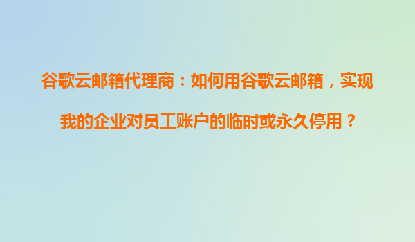 2025-10-25谷歌云邮箱代理商:如何用谷歌云邮箱实现企业对员工账户的临时或永久停用 一、谷歌云邮箱的企业管理优势 谷歌云邮箱(GoogleWorkspace)作为企业级电子邮件解决方案,以...