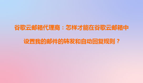 2025-10-25谷歌云邮箱代理商:高效邮件管理指南 作为现代企业沟通的核心工具,电子邮件的高效管理直接关系到工作效率。谷歌云邮箱(GmailforBusiness)因其强大的功能、稳定的性能和灵活的定制性,成为众多企业的首选。本文...