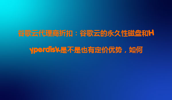 2025-10-25谷歌云代理商折扣:永续磁盘与Hyperdisk的定价优势及选择策略 一、谷歌云代理商折扣的核心优势 通过谷歌云代理商购买服务,用户可享受独家折扣和定制化套餐。代理商通常提供阶梯式折扣(如用...