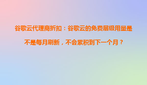 2025-10-25谷歌云代理商折扣:谷歌云的免费层级用量是不是每月刷新,不会累积到下一个月? 谷歌云免费层级的核心规则 谷歌云(GoogleCloudPlatform,GCP)为吸引新用户,提供了永久免费层级(Fre...
