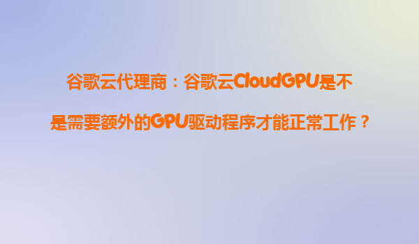 2025-10-25谷歌云代理商:谷歌云CloudGPU是否需要额外的GPU驱动程序才能正常工作? 谷歌云CloudGPU驱动程序的必要性 谷歌云(GoogleCloud)的CloudGPU服务为用户提供了强大的计算能力,尤其适合深度学习...