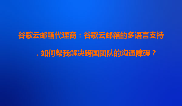 2025-10-24谷歌云邮箱代理商:谷歌云邮箱的多语言支持,如何帮我解决跨国团队的沟通障碍? 在国际化的商业环境中,跨国团队协作已成为常态。然而,语言差异、时区障碍以及信息同步问题往往成为团队高效沟通的绊脚石。谷歌云...