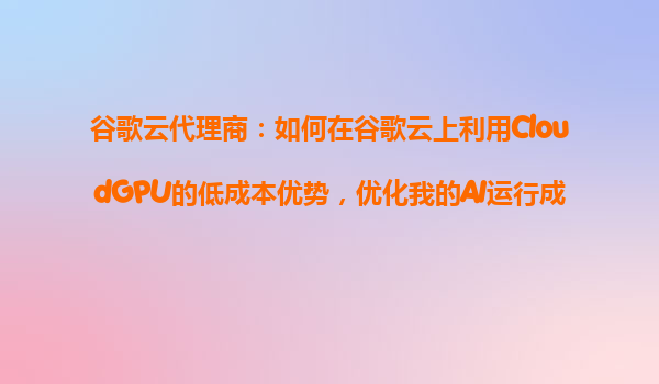 2025-10-24谷歌云代理商指南:利用CloudGPU低成本优势优化AI运行成本 谷歌云的核心优势与AI支持 谷歌云作为全球领先的云服务提供商,其强大的基础设施和专为AI优化的服务架构,为用户提供了独特的竞争优势。Clou...