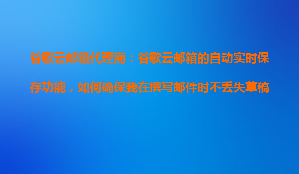 2025-10-24谷歌云邮箱代理商:揭秘自动实时保存功能,保障邮件草稿安全无忧 一、自动实时保存:谷歌云邮箱的核心防护机制 谷歌云邮箱(Gmail)通过创新的自动实时保存技术,从根本上解决了传统邮件...