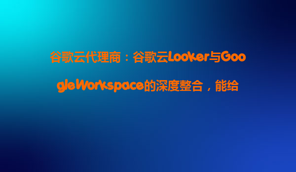 谷歌云代理商:谷歌云Looker与GoogleWorkspace的深度整合,能给我们带来什么便利? 一、引言:谷歌云的核心优势 谷歌云(GoogleCloud)作为全球领先的云计算服务提供商,凭借其...