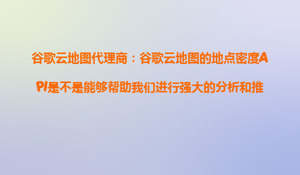 2025-10-24谷歌云地图代理商:谷歌云地图的地点密度API是不是能够帮助我们进行强大的分析和推荐? 谷歌云地图的地点密度API概述 谷歌云地图的地点密度API(PlacesDensityAPI)是一种基于谷歌...