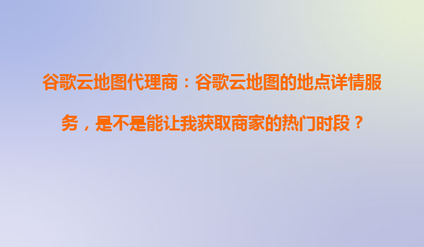 2025-10-23谷歌云地图代理商解析:地点详情服务如何帮助获取商家热门时段? 一、谷歌云地图地点详情服务简介 谷歌云地图(GoogleMapsPlatform)作为全球领先的地理位置服务提供商,其地点详情服务(PlacesAPI)为...